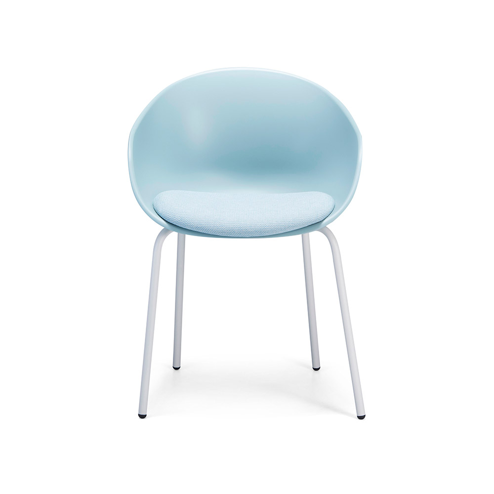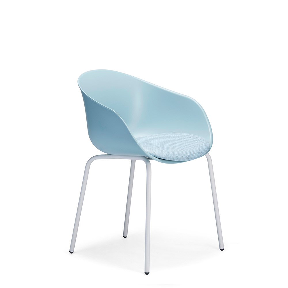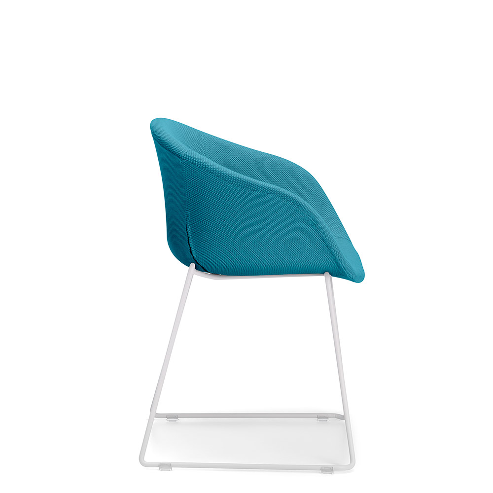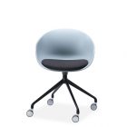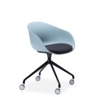 Available with an aluminium swivel base on castors, 4 leg or sled base in powder coat and 4 leg timber.